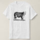 This design features a black and white ink drawing of a big, fat hereford cow. This type of cattle is mostly used for meat.