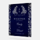 This design features navy blue heritage crest, delicate monogram initials, elegant script typography, a subtle luxury linen texture, with a detailed botanical leaf engraving pattern in silver on the backside of the card. Perfect for classic, royal-themed, old-money, and formal black-tie weddings. This product can be easily personalized. If you need help with the customization of the product or need matching products kindly please contact me via Zazzle.