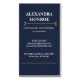This design features a deep navy background, classic serif typography, and subtle gold accents to create a polished, high-end look without excess decoration. The clean vertical layout places your name front and center, establishing instant credibility while maintaining excellent readability.
