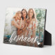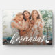 Hermanas Spanish Sisters Photo Plaque. Design features typography script ''Hermanas'' in trendy white lettering and a photo. Perfect gift for sisters.