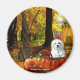 This is my cute little Maltese Puppy Dog Hermes. He is in the woods with some Pumpkins !
