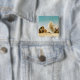 Hermit crab looking at larger shell 15 cm square badge