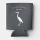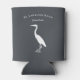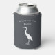 Show your regional pride with this simply designed Heron / Egret canned beverage cooler that features a silhouetted Heron standing with one leg bent, with customisable name and river, lake or region name - graphic and text are white on a customisable dark blue grey background - by katz_d_zynes