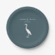 These heron silhouette paper plates feature a silhouetted Great Blue Heron / Egret and your custom text in white on a dark teal blue background - by katz_d_zynes