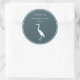 These simply designed round wedding thank you stickers feature a silhouetted heron / egret and your custom text in white on a customisable dark teal blue background - by katz_d_zynes