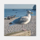 Herring gull perched on a wooden fence magnet