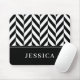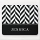 Herringbone Pattern Black & White Custom Name Mouse Mat