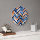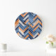 Herringbone Pattern in Navy Blue and Orange Large Clock
