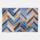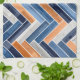 Herringbone Pattern in Navy Blue and Orange Tea Towel