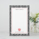 Stationery for teachers featuring an illustration of a pink apple at bottom. Border is black and white herringbone inspired design. Personalise the name.