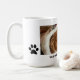 Wake up to the cutest face every morning with this adorable Cavalier King Charles spaniel coffee mug! Featuring a photo of a sleepy pup cosy and cuddling in a plaid blanket, this mug is sure to bring a smile to your face and start your day off right.