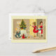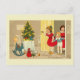Designed by Susan Epps Oliver. Vintage German Christmas image peeping into a room where a Christmas tree is surrounded by gifts and toys, including a rocking horse. The message is "Herzlichen Weihnachtsgruss".