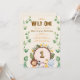 Get ready for a roaring good time with this wild one first birthday invitation. Featuring a playful jungle scene, this adorable design showcases a lion, zebra, giraffe, and hippo gathered around a rustic wooden log with the number 1 in the centre. Light green leaves frame the edges, adding a touch of adventure to the celebration. Perfect for your little explorer’s big day, this invitation sets the tone for a fun-filled safari party. Customise with your event details and let the wild fun begin.