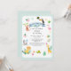 Cute jungle safari animals themed birthday invitation featuring tropical animals, an exotic bird, and other cute party elements. Send out the invites and celebrate the first birthday of the wild one with friends and family.