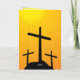 This customised Easter card features three crosses with 'He's Alive' on the front and 'I'm Forgiven' on the inside. The greeting can be modified.