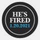 Our He's FIRED January 1, 2021 Classic Round Stickers are a fun way to celebrate BIDEN HARRIS Inauguration Day, January 1, 2021! Clean modern design features text in white and blue joined with white accented black background. The Voters have spoken and the choice is Joe BIDEN and Kamala HARRIS. Available in 2 sticker sizes. Volume discounts available!