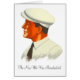Text is customisable. A debonair and dapper gentleman in sporting whites wearing a cap or beret. From an old French hat store advertisement.