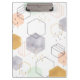 Hex Scatter I by Gabrielle McClure. Hexagons of various shapes and designs scattered across a white background.
