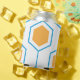 Hexagon abstract geometrical pattern in orange blu can cooler