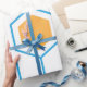 Hexagon abstract geometrical pattern in orange blu wrapping paper