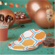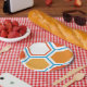 Hexagon in orange, blue and white paper plate