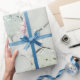 Hexagon Mint Aqua Silver Marble Shiny Wrapping Paper