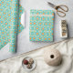 customisable wrapping paper for all craft and decor uses including wrapping gifts! Geometric hexagons in turquoise and orange colour scheme on light background, wrapping paper.
