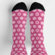 Socks in a Japanese kimono print - nesting hexagons with a central flower motif in deep burgundy wine, fuchsia pink and white on a pastel pink background