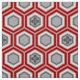Traditional Japanese kimono print fabric - nesting hexagons with a central flower motif in deep Chinese red, white and dark graphite grey on a light silver grey / grey background