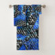 Hexagonal mosaic or blue and grey to black scales bath towel set