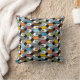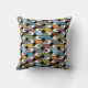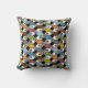 This throw pillow has a mid-century modern design of repeating hexagons in retro colours with starbursts.