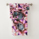 Hexagons surrounded by pinkish petal-like shapes bath towel set