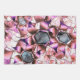 Hexagons surrounded by pinkish petal-like shapes tea towel