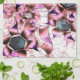 Hexagons surrounded by pinkish petal-like shapes tea towel