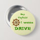Funny cruise button with a ship's wheel says "Hey Captain - I wanna DRIVE." Good for a little giggle.