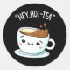 Hey Hot-Tea Funny Cuppa Tea Pun Dark BG Classic Round Sticker