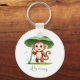 A cute and cheerful baby monkey standing on two legs, holding a big green leaf like an umbrella to stay dry in the rain. This adorable cartoon design captures playful innocence, rainy-day vibes, and nature-inspired charm. Perfect for animal lovers, cute illustration fans, kids, and anyone who enjoys cozy rainy moments.