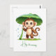 A cute and cheerful baby monkey standing on two legs, holding a big green leaf like an umbrella to stay dry in the rain. This adorable cartoon design captures playful innocence, rainy-day vibes, and nature-inspired charm. Perfect for animal lovers, cute illustration fans, kids, and anyone who enjoys cozy rainy moments.