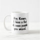 Humourous text announces to the universe some unfinished business... Customise for a hilarious gift idea for all your friends and relatives who know who you’re talking about!