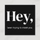 A sleek and chic business card featuring the playful phrase Hey, been trying to meet you boldly printed on the front! Made for the modern, stylish individual, this card showcases a minimalist design. The classic black background beautifully contrasts with the clean white font, making it an instant attention-grabber. On the back, we've incorporated a handy QR code that effortlessly directs people to your website, name, and contact information, ensuring they can easily reach you. Not limited to professional networking, this card can be used as a flirty and funny icebreaker for those daring encounters in the dating scene. Impress with confidence and leave a lasting impression with our business card.