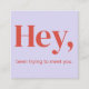 A sleek and chic business card featuring the playful phrase Hey, been trying to meet you boldly printed on the front! Made for the modern, stylish individual, this card showcases a minimalist design with a twist of vibrant colours. The eye-catching lavender background beautifully contrasts with the striking coral font, making it an instant attention-grabber. On the back, we've incorporated a handy QR code that effortlessly directs people to your website, name, and contact information, ensuring they can easily reach you. Not limited to professional networking, this card can be used as a flirty and funny icebreaker for those daring encounters in the dating scene. Impress with confidence and leave a lasting impression with our business card.