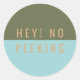Modern green and blue colour block gift tags that say "Hey! No Peeking".