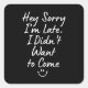 Hey Sorry I’m Late, I Didn’t Want to Come Square Sticker