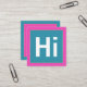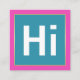A modern and contemporary design with a bold "Hi" and brilliant colors and a gold border.