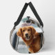 I actually had been searching other sites for a duffle gym bag and I couldn't find any. This one is just what I was looking for with all the features. The inside zip pocket, the outside mesh pocket and LOTS of room inside. Love the printing. Really like how the floral print turned out.