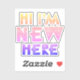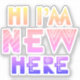 Hi I'm new here in whimsical colourful gradient font in shades of yellow, peach, pink and blue.