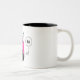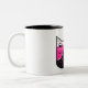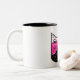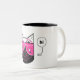 Pink, white, and black Hi Owl illustration on white mug with black inside.