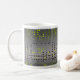 Stainless steel silver metal look surface chrome background with hi-tech looking, futuristic bright green pixels or LED lights. Especially great for anyone in the technical fields, computer, gaming, tech repair, or electronic related businesses. A unique and cool mug that stands out from the rest. Lots of styles and colours of mugs are available.