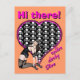 '50's style pin up in tank suit on a skull and crossbones filled heart background