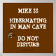Hibernating in Man Cave Do Not Disturb with caveman graphic. Change "Mike" to YOUR NAME to personalize! Change colors, fonts, etc. Easy templates!